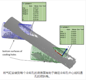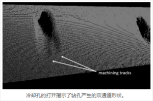 冷却孔检查测量系统:SURFACEINSPECT™系列 关键词:航空航天工业,能源工业,涡轮叶片,燃气内燃机 冷却孔的功能和特性 为了帮助避免内燃机的与热相关的故障,在空心涡轮机叶片中钻出多个小的冷却孔,以将冷却空气 从叶片内部排放到其表面上。随着时间的推移,冷却孔几何形状变得越来越复杂,以提高其功能效率。 诺飞勘的SURFACEINSPECT™系列提供冷却孔检测的高级功能。这种非接触式检测系统可以高速(每秒2,100 到100,000个3D点)获得高精度的三维表面形貌。在涡轮叶片上的单次通过中,系统扫描仪获得表面非常 密集的3D点云,从而能够表征: · 扩散器开口的形状 · 冷却孔内径(ID)的一部分(可以通过改变扫描角度进一步延伸) · 通孔的几何中心 · 通孔的倾斜角度 · 所获得的冷却孔底面的轮廓,波纹度和粗糙度 · 每个孔相对于CAD模型的尺寸可变性。