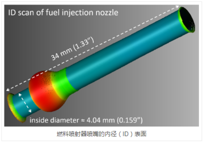 测量系统:TUBEINSPECT™ 关键词:管,圆筒,圆筒,内径(ID),外径(OD),O形环槽,螺纹,花键,底切,交叉孔 高精度行业的管材测量要求 制造的管的内表面和外表面形貌可以极大地影响它们的预期功能性能。因此,许多高精度行业(汽车,航空 航天,医疗仪器等)的管道需要遵守以下方面的严格规范: · 内外尺寸参数(GD&T):直径,直线度,圆柱度,锥度,椭圆度,锥度 · 内部特征的尺寸,例如台阶,花键,螺纹,腔室,交叉孔和O形环槽 · 失真,震颤或歪曲,以及跳动 · 检测和测量缺陷 · 粗糙度特征 · 厚度测量,如半透明涂层的厚度。 诺飞勘的TUBEINSPECT™是一种模块化非接触式测量系统,可大大加快高精度管道测量的任务,并促进自动化。 该系统使用小直径非接触式光学探头进入管内部,获得其内部3D地形: · 亚微米精度 · 高速:每秒2,100到100,000个3D点 如果应用需要测量整个ID表面,则在光学探针向内推进时旋转管,获得表面为3D点的密集螺旋。使用相同的 系统来测量管外部,这次光学探针在旋转管的外侧。 燃油喷嘴和针头采集的3D点云 获取燃料喷嘴的内表面和匹配的喷嘴针的外表面。这些表面的微米精度测量可以作为计算的基础,以确定两个 加工表面是否满足要求。 步枪枪管测量 - 深入到达 测量18“0.22口径步枪枪管(长度约46厘米,直径约5.6毫米)的ID。计算多个几何尺寸和测试(GD&T)参数 以确保符合QA / QC要求。